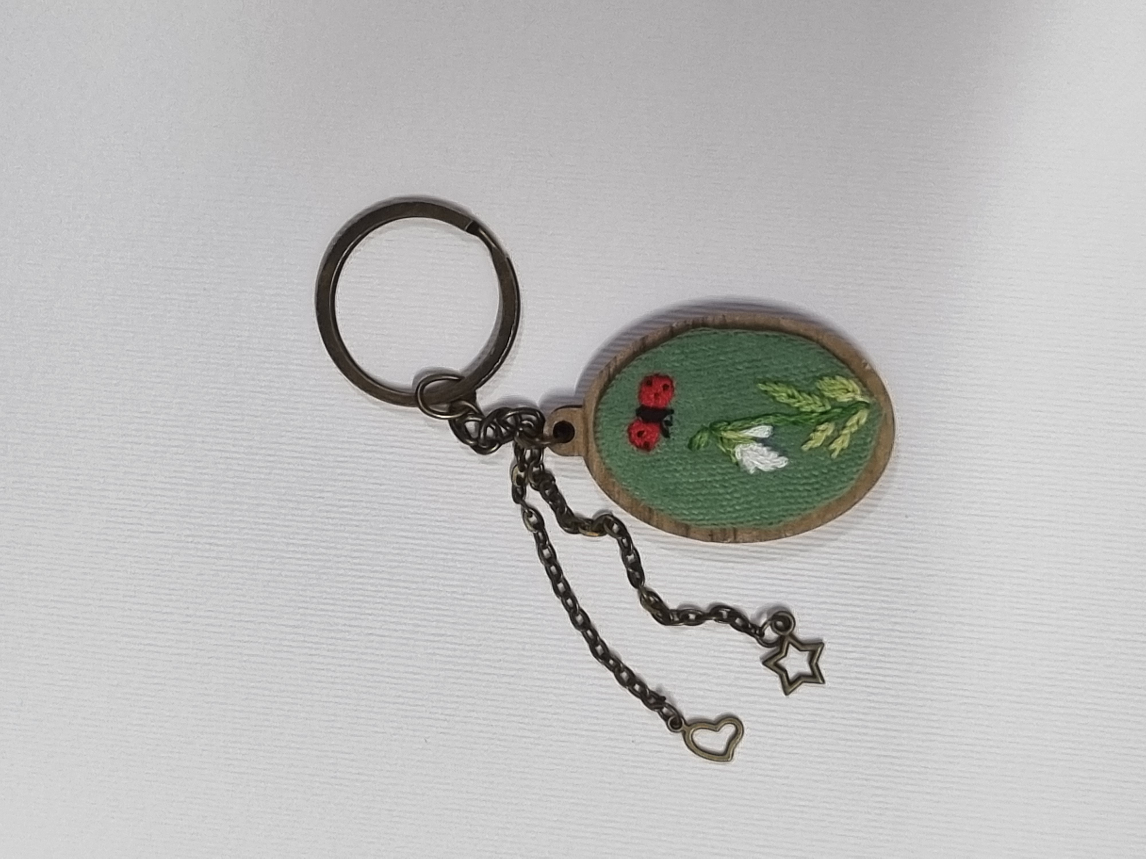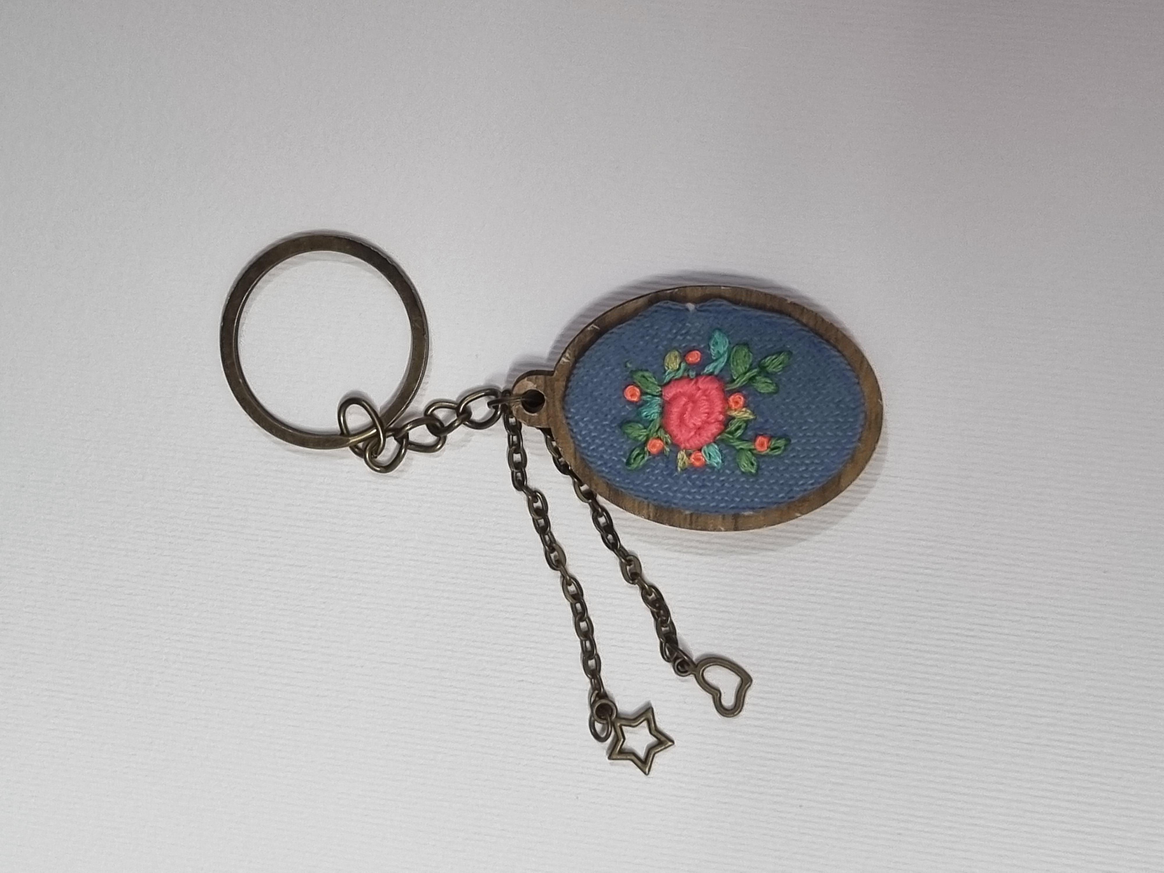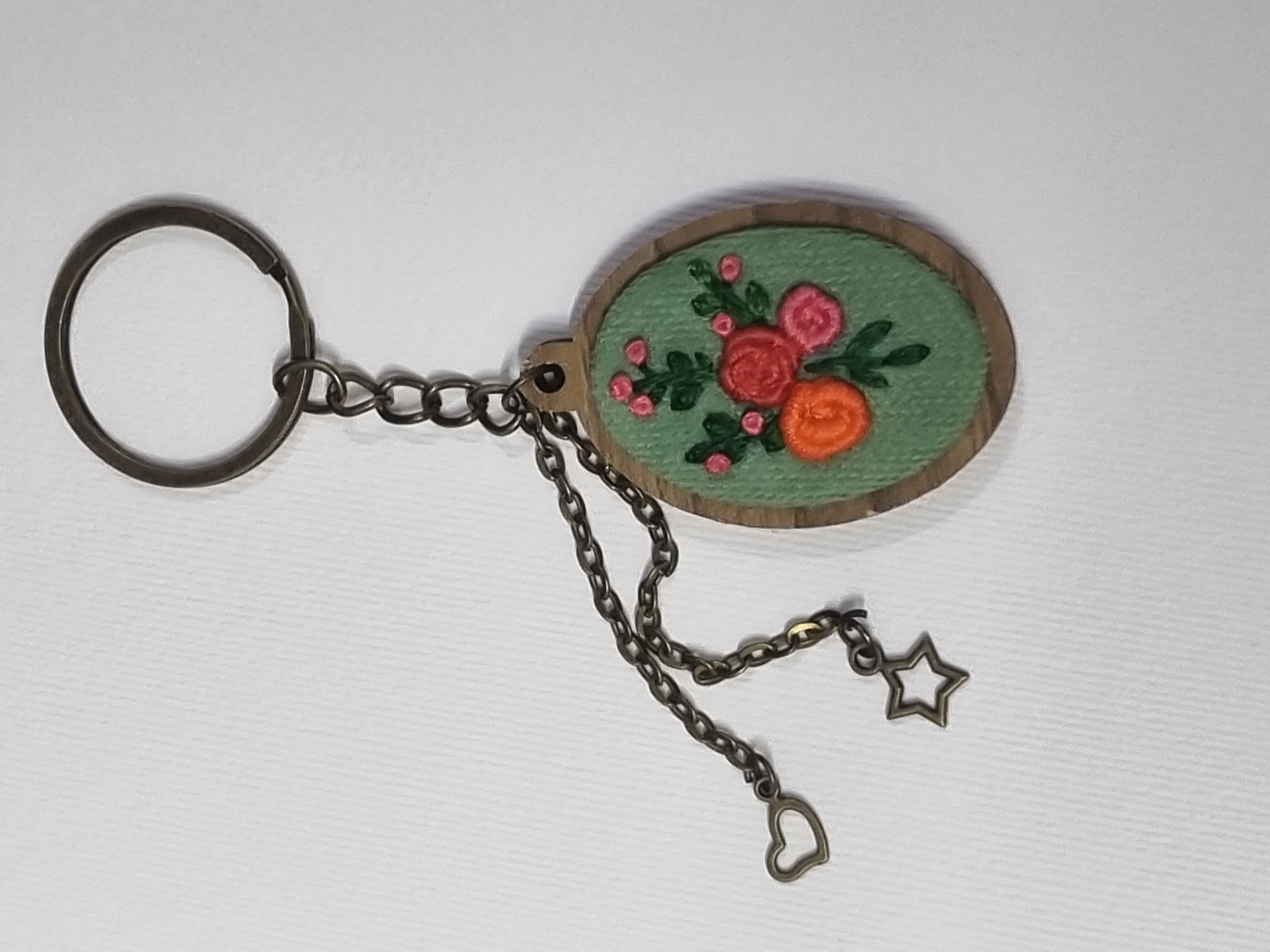 جاکلیدی گلدوزی شده بیضی چوبی اویز دار